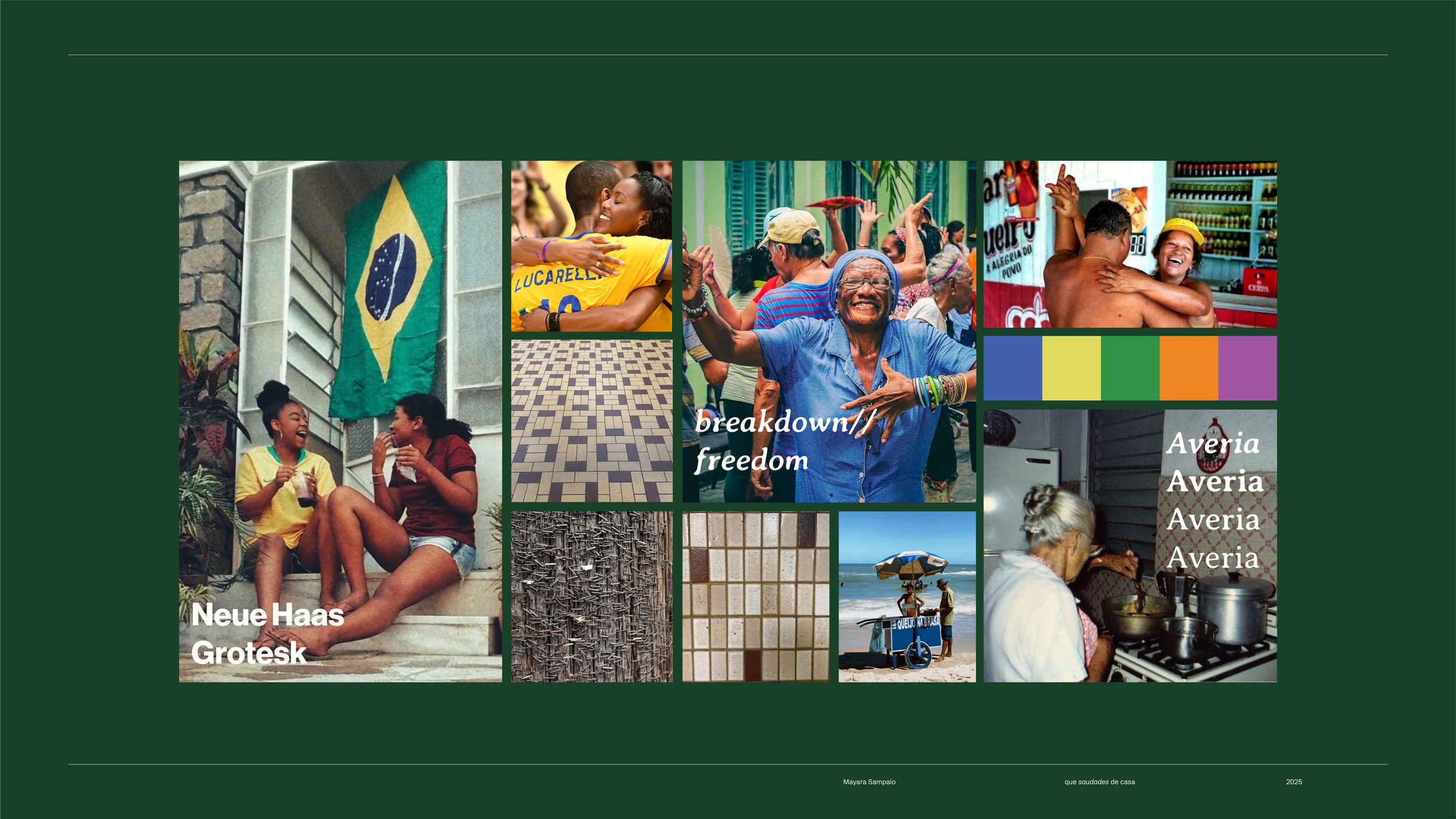 "Saudades de Casa" is a serie of posters designed as a gentle reminder of home for the Brazilian community in Toronto. A dictionary for untranslatable words. Each piece functions as a visual dictionary entry, presenting untranslatable Portuguese words alongside their poetic definitions. The design intentionally merges the two cultures, utilizing the color palette and shapes of the Brazilian flag layered with textures inspired by Toronto's subway stations. The typeface Averia Libre, with its hand-crafted and nostalgic feel, completes the composition, transforming each poster into both a linguistic tool and a shared point of cultural connection.