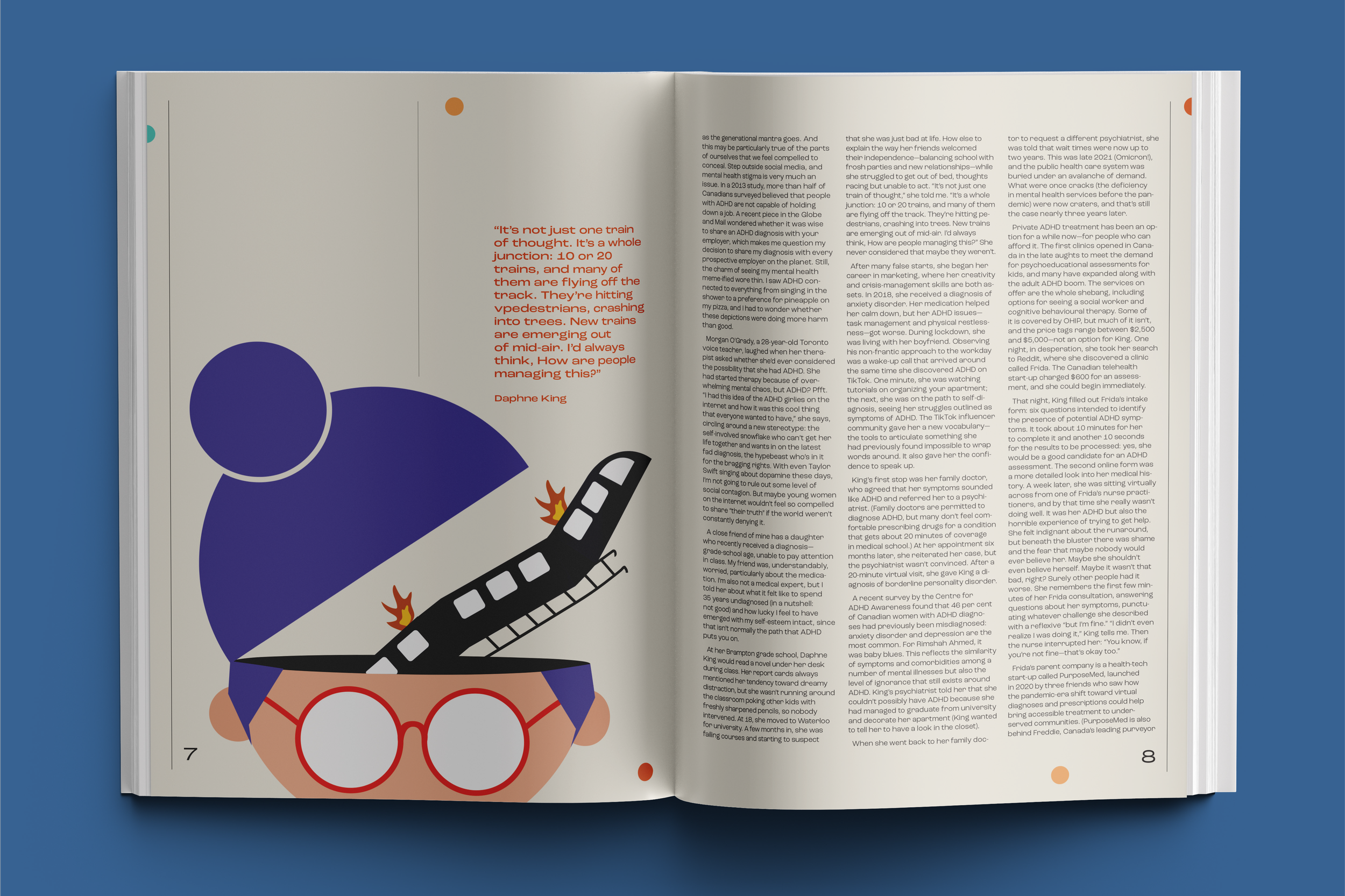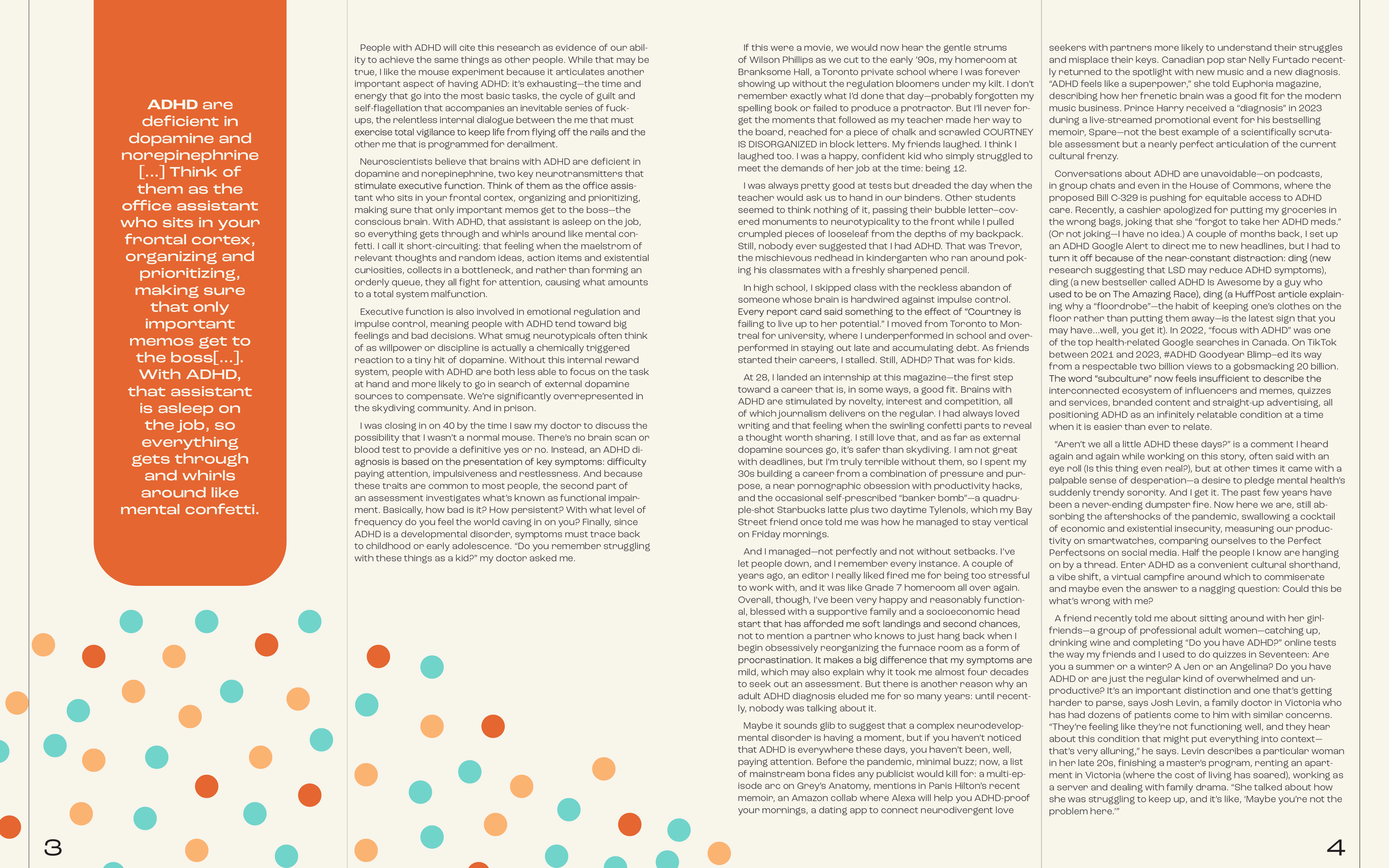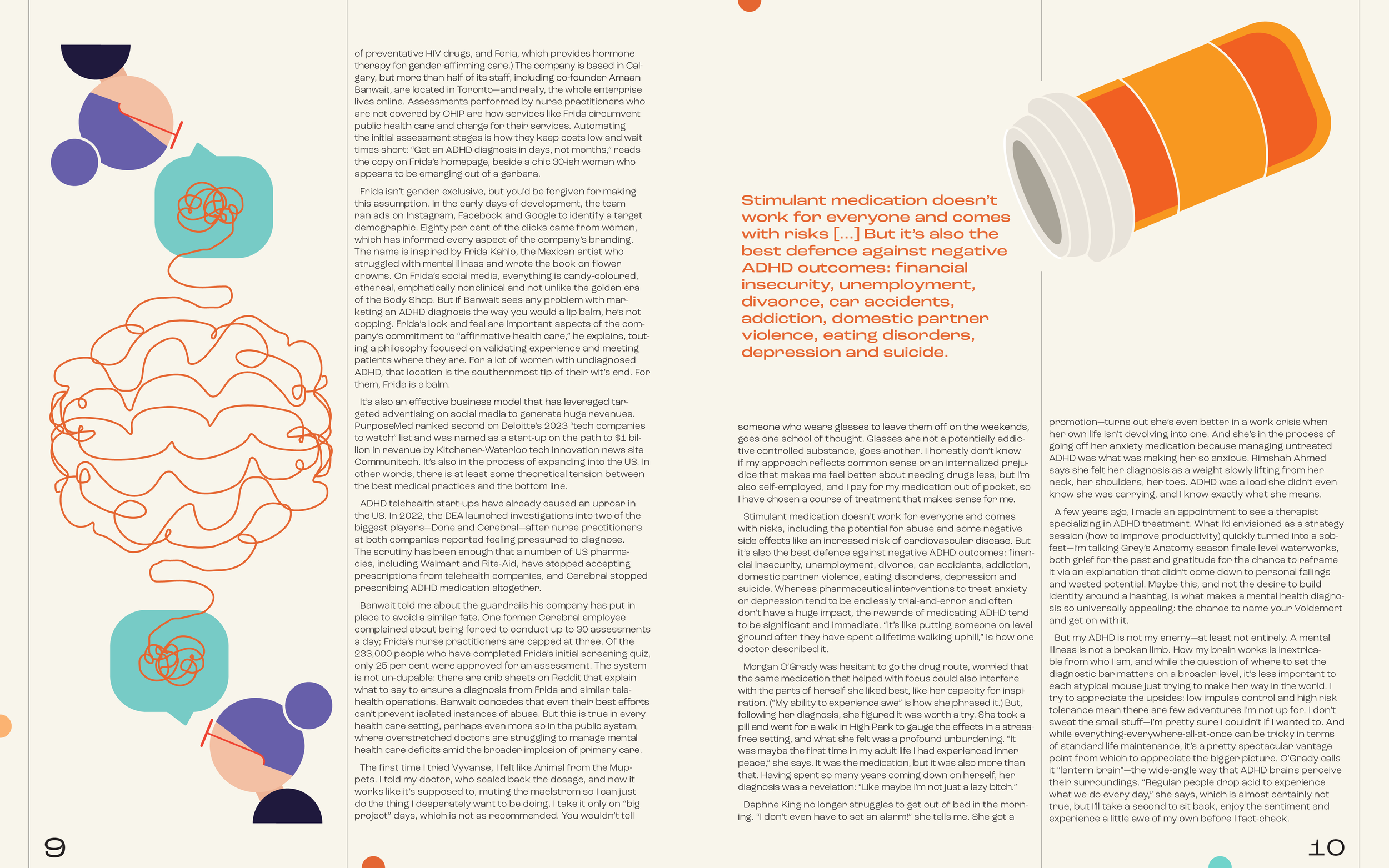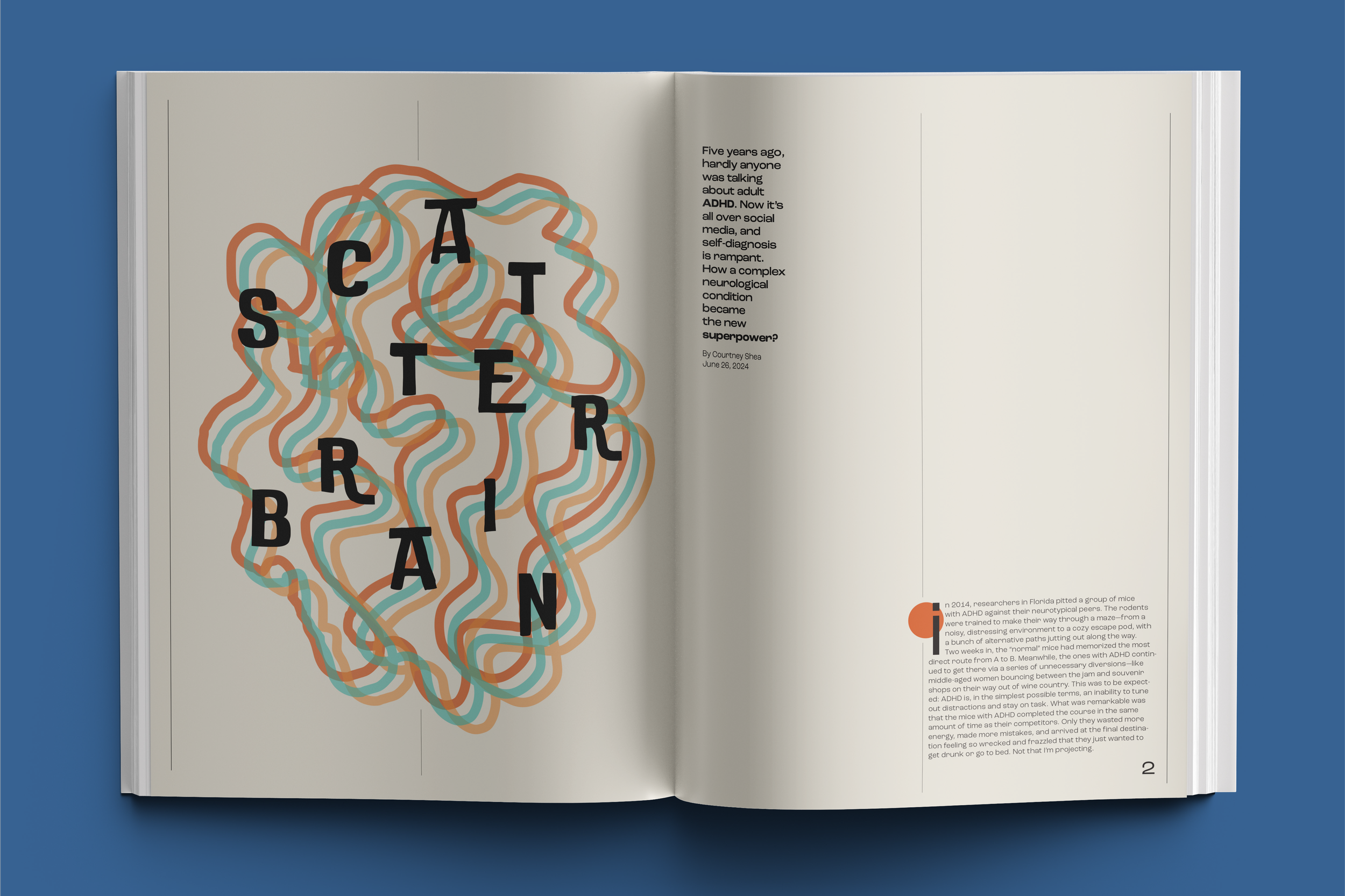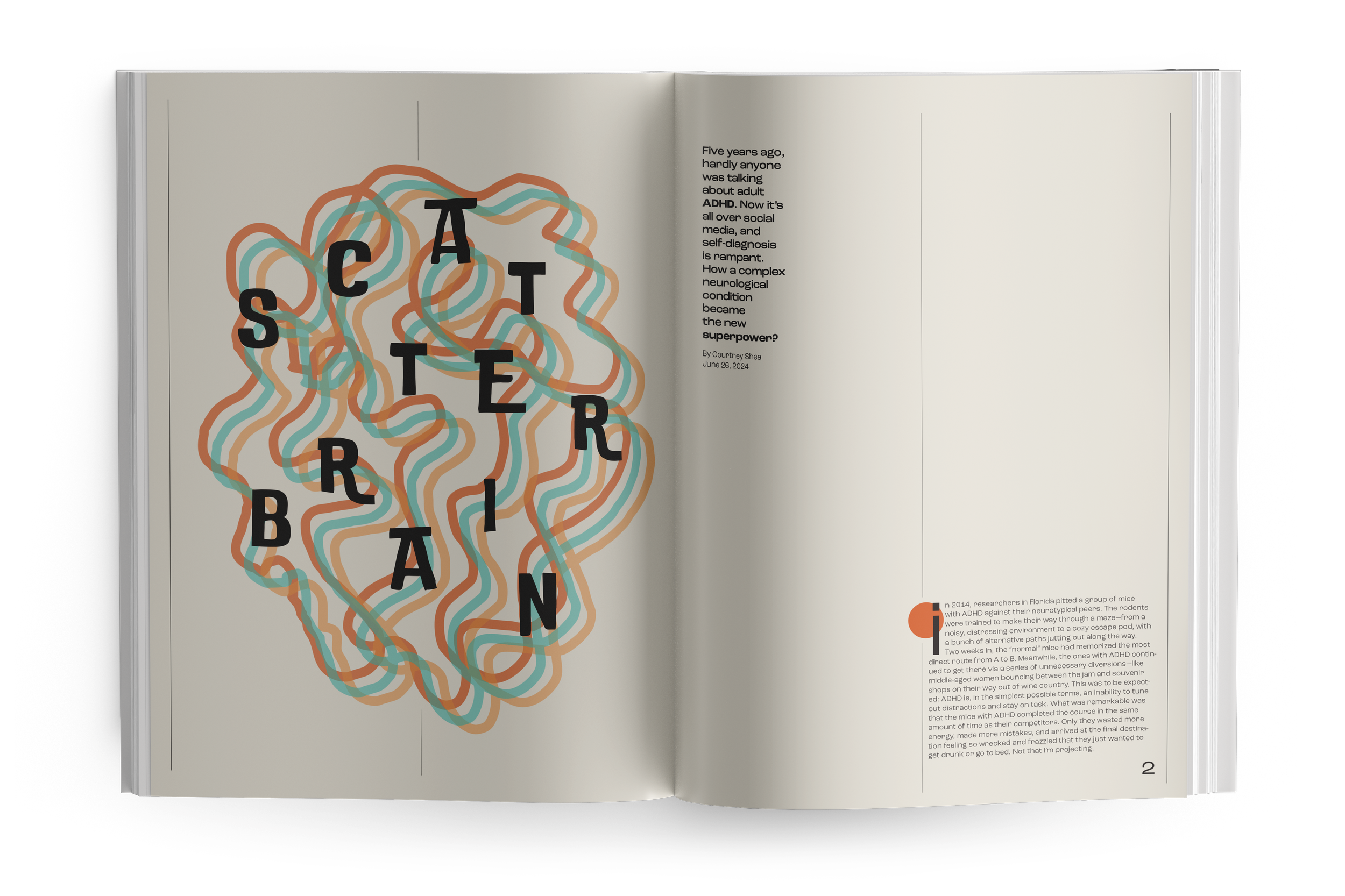 For the editorial project "Scatter Brain" I developed customized layout and illustrations to navigate the textual density of the article. The design facilitates